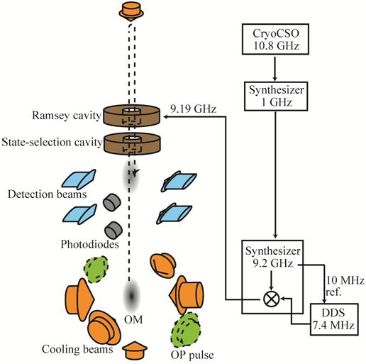 1秒は、セシウム原子に共鳴するマイクロ波の周波数(9 192 631 770 Hz)に基づいて定義されています。 現在この周波数を最も正確に決定する手法は、原子泉と呼ばれるものです。 原子泉では、大雑把にいって